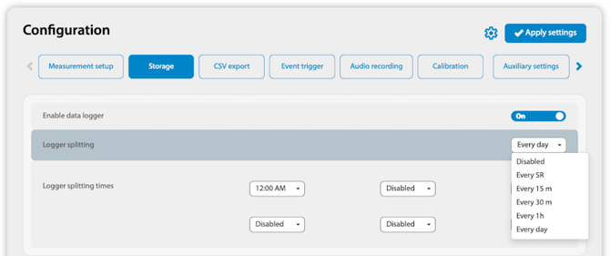 Logger Splitting Times: Set the times here